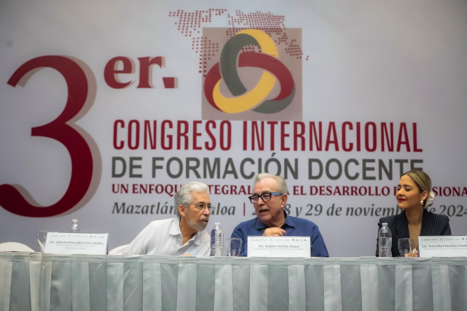 En su mensaje, la secretaria de Educación Pública y Cultura, Gloria Himelda Félix Niebla, destacó que con la realización de este Tercer Congreso Internacional de Formación Docente, Sinaloa y particularmente Mazatlán son el epicentro del diálogo académica de las escuelas normales, en donde se conocerán todas las tendencias y desafíos de la formación docente.