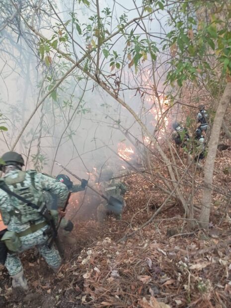 Culiacán, Sinaloa a 23 de Mayo del 2025.-* Por instrucción del Gobernador Dr. Rubén Rocha Moya, la Secretaria de Bienestar y Desarrollo Sustentable (SEBIDES) María Inés Pérez Corral en conjunto con el General Porfirio Fuentes Vélez subieron con sus respectivas brigadas para reforzar a los combatientes contra el incendio forestal que se está dando en este momento en El Palmito, también acudió presidente municipal de Concordia, Oscar Macario Zamudio asimismo subieron las brigadas de Protección Civil y Conafor, hicieron un diagnóstico y el día de hoy viernes a las 6 de la mañana las brigadas del General Fuentes, SEBIDES, Conafor, ciudadanía, voluntarios, Guardia Nacional y se adherido Protección Civil para salir a atender por polígonos el fuego.