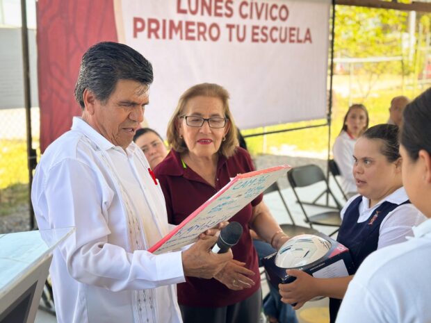 Este lunes, el programa de Lunes Cívico del H. Ayuntamiento de Mocorito tuvo lugar en el Centro de Atención Múltiple (CAM) No. 36, institución educativa dedicada a brindar atención especializada a niñas, niños y adolescentes con discapacidad. El acto fue encabezado por el presidente municipal, Enrique Parra Melecio, acompañado por autoridades educativas, personal docente, madres y padres de familia.