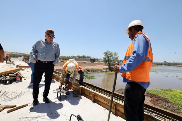 El mandatario estatal, acompañado del Secretario de Obras Públicas, Raúl Montero Zamudio y el residente de obra Rosario Cervantes, además de reconocer el trabajo de los constructores, constataron los trabajos del puente en el sector Santa Fe, mismo que registra buen ritmo de ejecución, presentando un 84% de avance y que beneficiará directamente a todos los habitantes del sector norte de Culiacán, mejorando la conectividad vial, el acceso a las colonias del sector, elevando la plusvalía de las propiedades y transformando la vida de los culiacanenses.