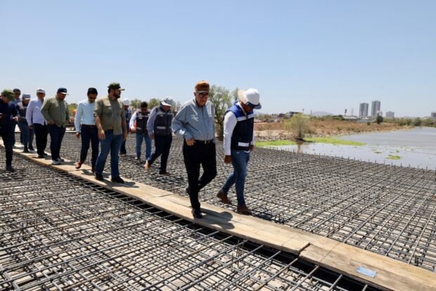 Culiacán, Sinaloa 05 de junio de 2025.- Para garantizar que el trabajo se realice de acuerdo a las especificaciones requeridas y en los tiempos de ejecución prometidos, la mañana de este jueves, el Gobernador Rubén Rocha Moya, realizó la supervisión del puente que cruza el río Humaya e interconecta la zona de Santa Fe con el Blvd. Enrique Sánchez Alonso, facilitando el traslado a diferentes puntos de la ciudad.
