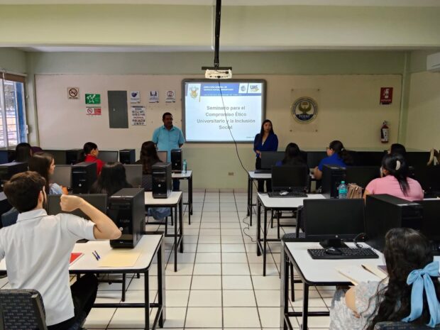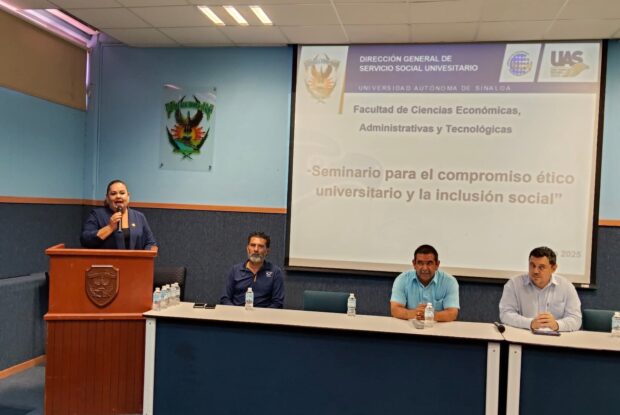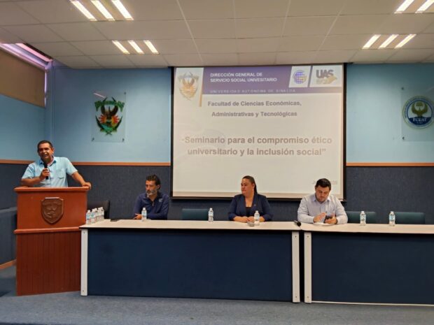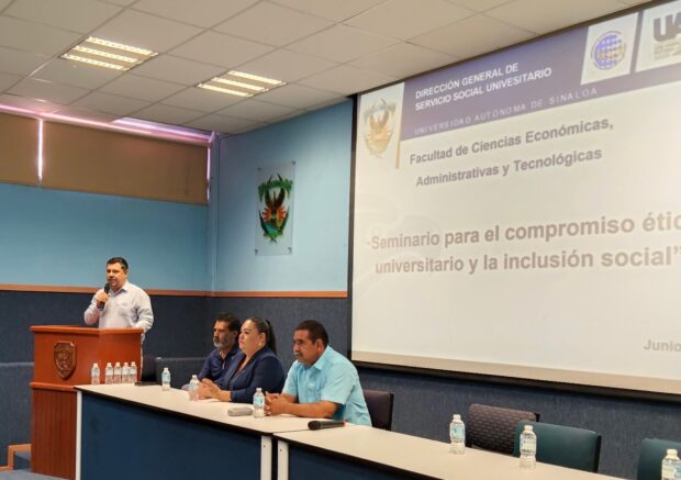 Guamúchil, Sinaloa, junio de 2025.- Con el objetivo dar información importante del Servicio Social, la citada área de la Facultad de Ciencias Económicas Administrativas y Tecnológicas, llevó a cabo “Seminario para el Compromiso Ético y la Inclusión Social”, para alumnos de todas sus licenciaturas que están por iniciar con esta obligación institucional.