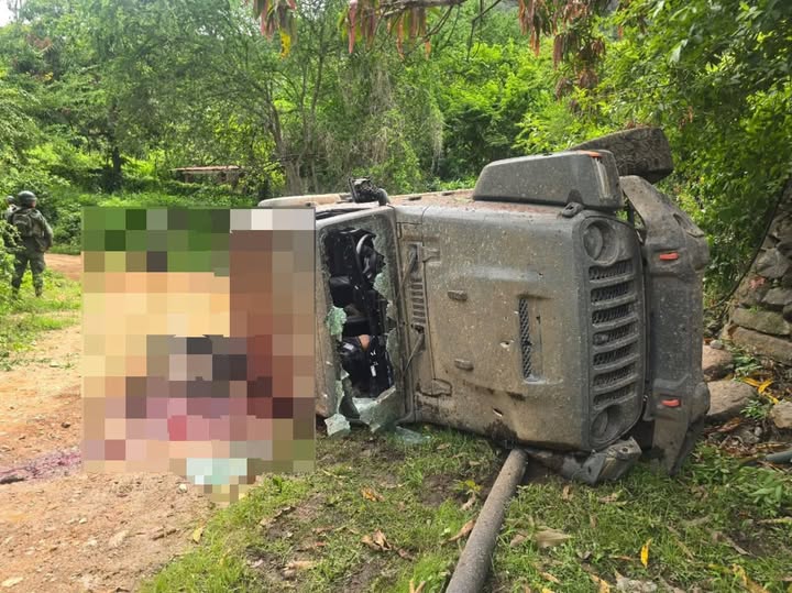 Las investigaciones arrojaron que se localizó una camioneta Jeep Rubicón en color gris volcada, que presentó además varios impactos de bala y que a su costado se encontraban los cuerpos sin vida de dos masculino.