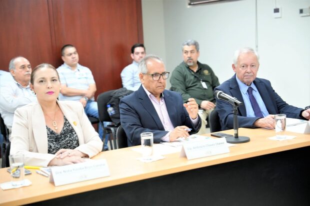 El Rector fue acompañado por la doctora Sofía Ángulo de Madueña, directora de la Unidad de Bienestar Universitario; la Secretaria General, doctora Nidia Yuniba Brun Corona; el maestro Sergio Mario Arredondo Salas, Secretario Académico Universitario y la doctora Elizabeth Castillo Cabrera, Secretaria de Administración y Finanzas.