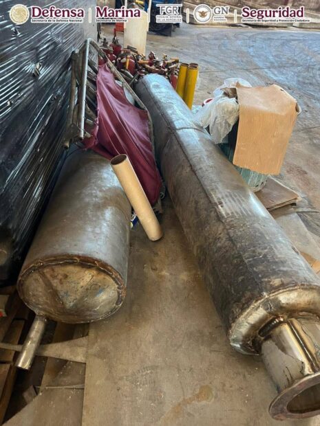 • Se aseguraron cerca de 200 tambos, más de 2 mil costales con precursores químicos, paquetes con marihuana y una pipa con 7,000 litros de hidrocarburo.