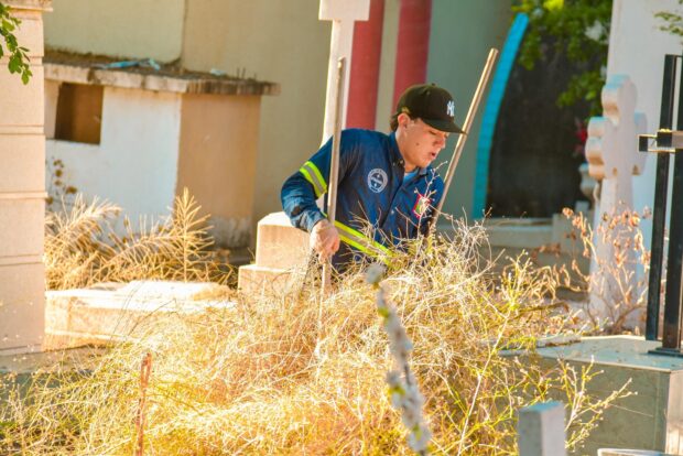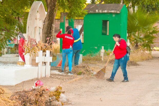 Sindicato y Ayuntamiento de Salvador Alvarado unen esfuerzos para limpiar los panteones rumbo al Día de Muertos