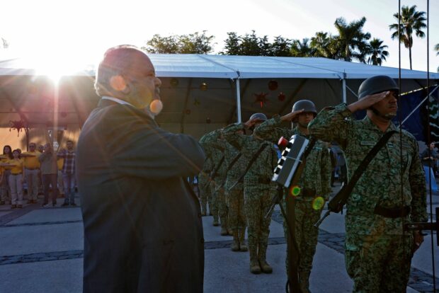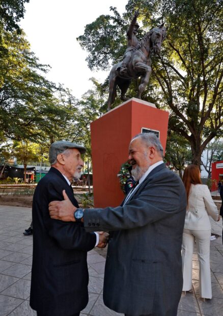 Posteriormente, las autoridades, se trasladaron a la plazuela Álvaro Obregón, a un costado de la Catedral de la capital sinaloense, para montar una guardia de honor en el monumento al General Antonio Rosales, quien acompañado de sus soldados mexicanos derrotó al Ejército Francés en la Batalla de San Pedro en el año de 1864.