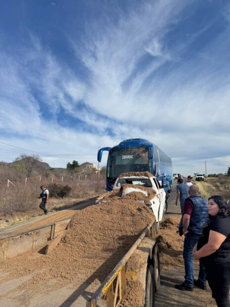 Las investigaciones preliminares indican que el camión de pasajeros al parecer intentó realizar una maniobra de rebase cuando circulaba al sur y la camioneta lo hacía por el otro carril, lo que provocó el impacto.