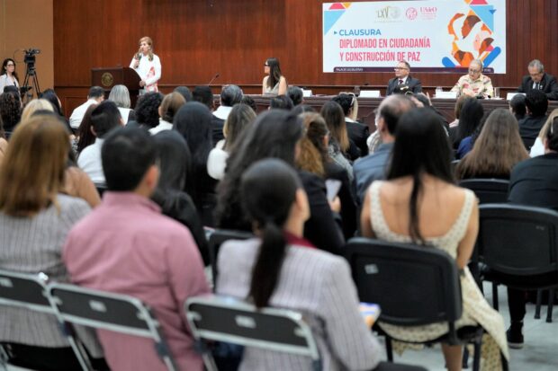 Durante su intervención, la diputada Guerra Ochoa reconoció la constancia y disciplina de quienes concluyeron el diplomado, al destacar que un total de 95 personas culminaron satisfactoriamente el programa, lo que consideró una muestra de compromiso real con la construcción de paz. Subrayó que Sinaloa enfrenta un contexto complejo derivado de dinámicas de violencia, así como de un entorno internacional marcado por conflictos bélicos y tensiones globales, lo que obliga a redoblar esfuerzos institucionales y ciudadanos.