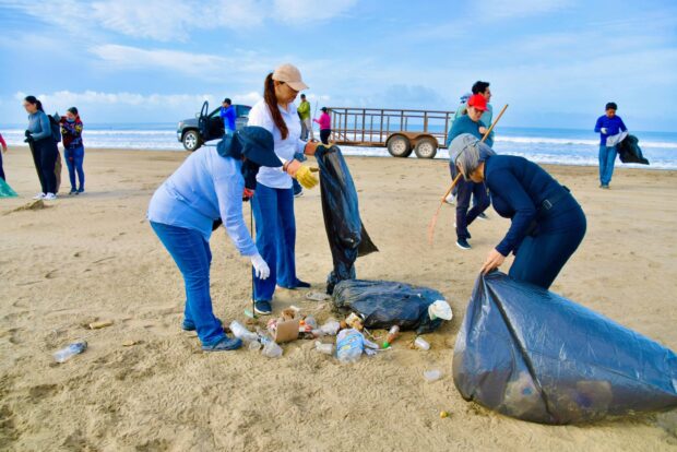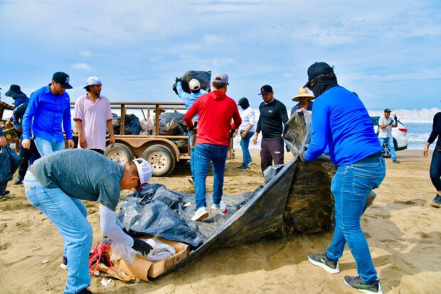 La presidenta municipal, Lupita López González, encabezó estas acciones en las que participaron alrededor de 200 personas, logrando retirar cerca de 25 toneladas de basura en la playa.