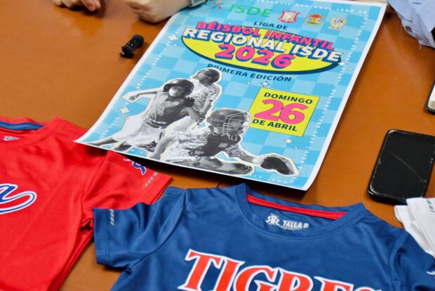 Guamúchil, Sinaloa; a 14 de abril del 2026.–Con el objetivo de fortalecer el desarrollo deportivo en la niñez, autoridades municipales y deportivas anunciaron oficialmente la Liga de Béisbol Infantil Regional ISDE 2026, durante una rueda de prensa celebrada en la Sala de Cabildo.