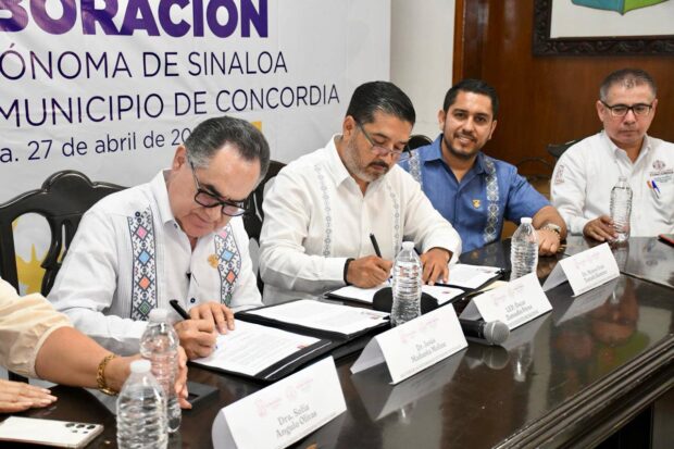 La Universidad Autónoma de Sinaloa (UAS) y el Ayuntamiento de El Rosario firmaron un convenio de colaboración institucional en beneficio de la comunidad universitaria, así como del desarrollo económico y social de este municipio sureño.