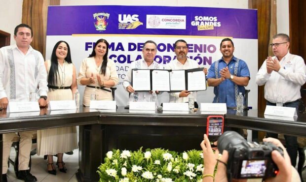 La Universidad Autónoma de Sinaloa (UAS) y el Ayuntamiento de El Rosario firmaron un convenio de colaboración institucional en beneficio de la comunidad universitaria, así como del desarrollo económico y social de este municipio sureño. El rector de la UAS, el doctor Jesús Madueña Molina, encabezó la firma del documento junto a la presidenta municipal, Claudia Liliana Valdez Aguilar. Al respecto, el vicerrector de la zona sur, el doctor Iván Tostado, aseguró que con esta alianza se fortalecen los lazos entre ambas instituciones en favor de los rosarenses. Objetivos del acuerdo El acto protocolario se llevó a cabo en la Sala de Cabildo, ante la presencia de regidores y funcionarios municipales. El doctor Jesús Enrique Sánchez Zazueta, director de Vinculación Universitaria, detalló que los objetivos principales incluyen: · Prestación de servicio social y prácticas profesionales. · Asesorías técnicas y especializadas. […]