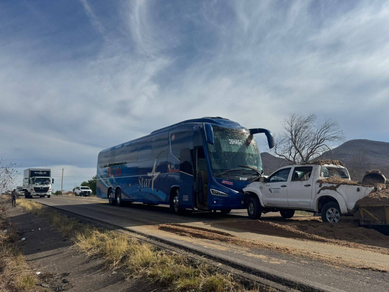 Dos personas que viajaban en una camioneta propiedad de la Unión Ganadera Regional de Sinaloa y asignada a la Asociación Ganadera Local de "Salvador Alvarado", resultaron lesionadas después de la unidad chocó contra un autobús de pasajeros de la línea Autobuses del Évora. El accid3nte se registró alrededor de las 15:00 horas, por la carretera Internacional México 15, a la altura de la comunidad Álamo de Los Montoya, perteneciente a este municipio. Los informes no revelan la identidad de los lesionados, sin embargo, se dijo que ambos fueron auxiliados por paramédicos de Cruz Roja y los trasladaron a un hospital de la ciudad. La camioneta jalaba un remolque cargado con alimento para ganado, producto que quedó esparcido por la cinta asfáltica y que bloqueo momentáneamente el tráfico vehicular. Las investigaciones preliminares indican que el camión de pasajeros al parecer intentó […]