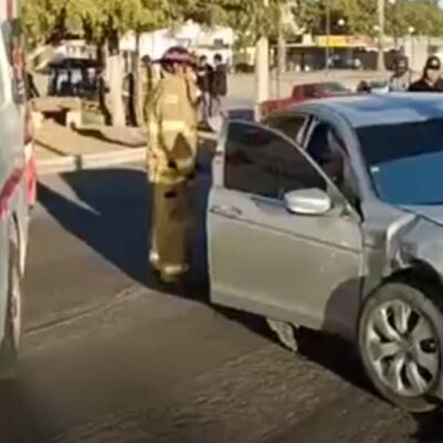 ¡Ecotaxista y joven mujer resultan heridos tras un fuerte choque en transitado crucero en Guamúchil!