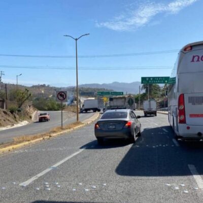 ¡Arrojan “poncha llantas” y atraviesan trailers en el puente en Chilillos, en la entrada a Ell Rosario, Sinaloa!